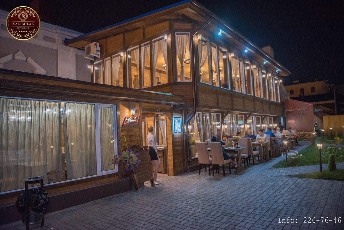 Наш ресторан открывает потрясающий панорамный обзор! Он славится не только мастерством шеф-поваров и баром - мы привлекаем дизайном снаружи и внутри. Если вам важна эстетика, мы ждём вас в ресторане. Если за окном стоит тёплая погода, хочется больше бывать не в помещениях, а на улице. И не только чтобы прогуляться, но и пообедать или поужинать. Для этого у ресторана Хан булак есть своя терраса с приятным видом.