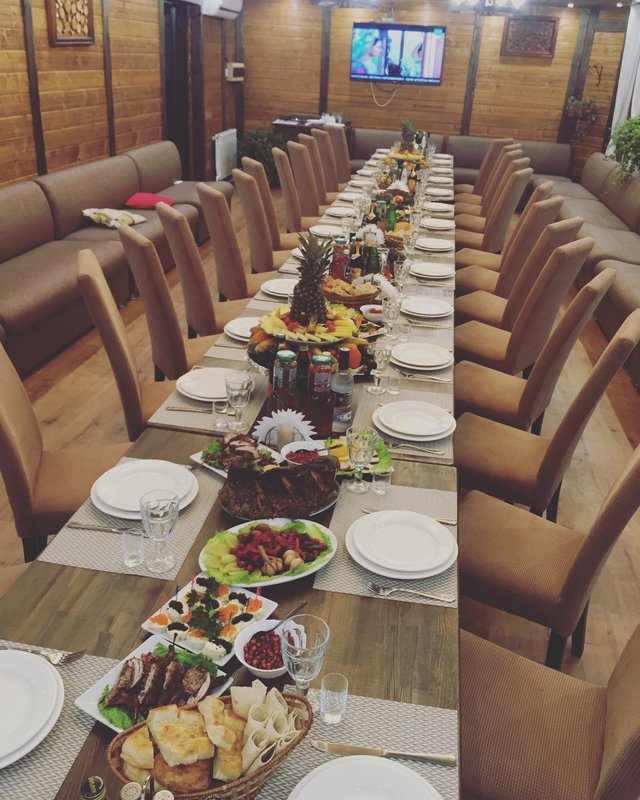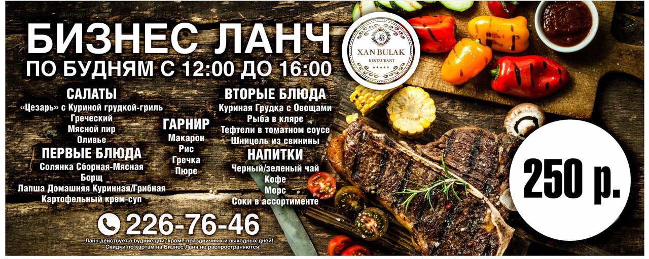 В нашем меню представлены блюда нескольких видов кухонь: русской, татарской, кавказской (а именно грузинской), европейской, из которых самой популярной, пожалуй, является европейская. Наши повара знают, как правильно сохранить истинный вкус главных составляющих в блюде - овощных или мясных, лишь аккуратно дополняя его вкусом специй.